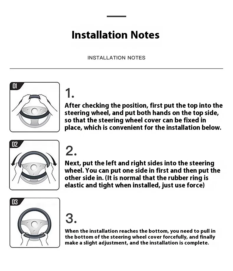 1. Diameter: Suitable for steering wheels with a diameter of 14.5-15 inches (37-38 cm).